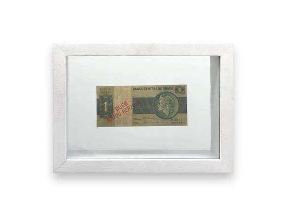 Leilão de Arte - Edição outono de 2026 • Lote cédula em papel moeda Reproduzida no livro do artitsaCildo Meirelles usou as notas carimbadas no período da ditadura militar para indagar de forma anonima e explicita em meio ao período de censura onde o medo o silêncio estavam present...Lote 12