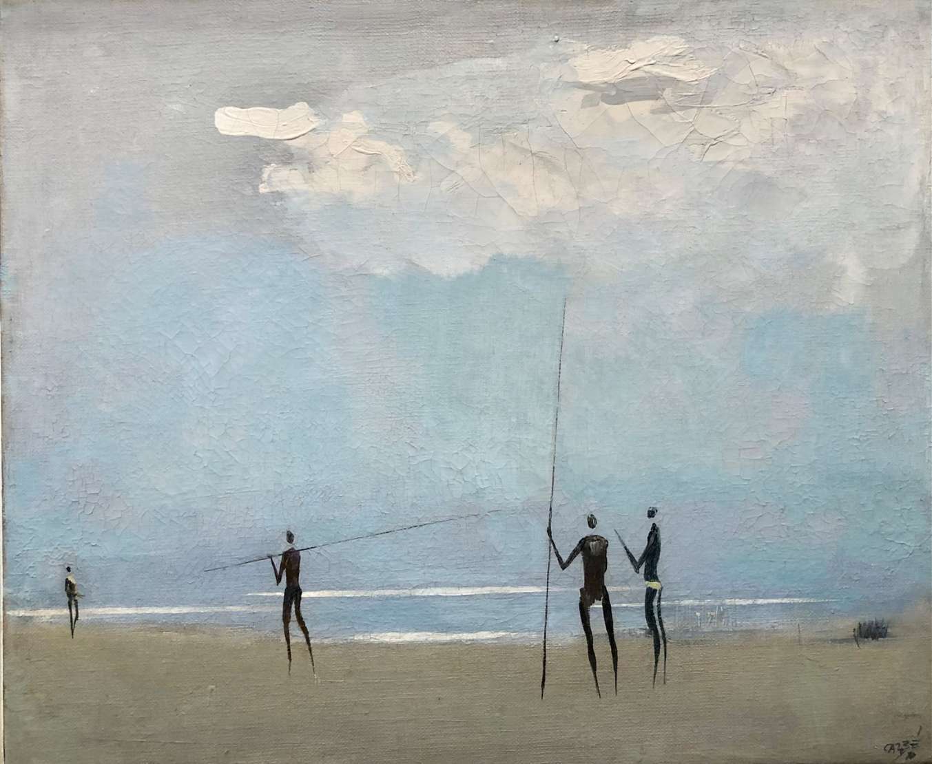 Óleo s/tela Ass. inf. direito e verso e datado A produção abstrata de Antônio Bandeira (1922-1967) remonta à década de 1940, quando, ainda em Paris em uma temporada de estudos na École Nationale Supérieure des Beaux-Arts e na Académie de La Grande Chaumière, aproximou-se das vanguardas europeias e passou a incorporar técnicas do cubismo e do fauvismo em seus trabalhos. Sua relação com o alemão Wols (1913 - 1951) e com Camille Bryen (1907 - 1977) influenciam a adoção de uma pintura mais gestual, abstrata e aberta a sugestões ligadas ao automatismo surrealista. Apesar de ainda preservar a figura neste período, já é de maneira sugerida, marcada pela interação de elementos livres como manchas e marcas de pincel. Em 1948, Bandeira participa da mostra La Rose des Vents, na Galérie des Deux Ilés, que marca sua adesão ao abstracionismo informal principalmente visto nos trabalhos em guache e nanquim. Na pintura, o trabalho Paysage Lointain de 1949, no qual o artista incorpora manchas, riscos e formas coloridas sem submetê-los a um desenho prévio, é dos primeiros exemplos da sua adesão ao abstracionismo em telas. De volta ao Brasil, mudou-se para Fortaleza em 1952, onde Bandeira iniciou uma nova fase de sua pintura caracterizada pela radicalização dos princípios da abstração informal. Nessas telas, vê-se a incorporação de técnicas como os gotejamentos e respingos da tinta que produzem composições livres de linhas harmonizado por formas coloridas, conforme observamos no lote apresentado. Este é seu período de maior prestígio: recebeu o prêmio na 2ª Bienal Internacional de São Paulo (1953), teve exposições organizadas em Paris, Londres e Nova York e realizou um painel para o Palais des Beaux-Arts de Bruxelas (1958). Bandeira permanece na França até 1959, quando retorna para uma temporada bem sucedida de exposições no Brasil, entre elas a grande individual no Museu de Arte Moderna da Bahia - MAM/BA em 1960 e a 5ª e a 6ª Bienal Internacional de São Paulo. O quadro apresentado é de um período em que sua produção já era mais escassa e que perdurou até sua morte, em 1967.