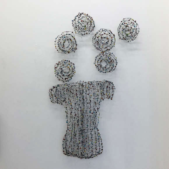 Lote arrematado  Lote 22 - Ao vivo! Arame e capacitorPossui certificado - Luciana Caravello Arte Contemporânea 180 x 100 x 10 cm