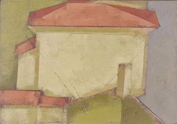 Vinil e colagem encerados s/ tela colada em placa de madeiraTit. ass. dat. e no verso, localizado Ouro Preto