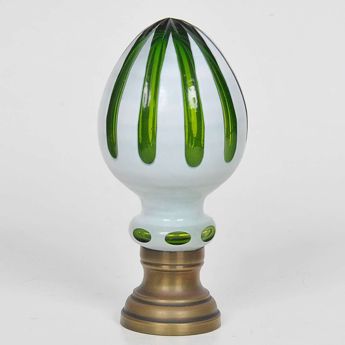 Par de vasos floreiras em porcelana vitrificada sendo um na cor branca e outro nas cores verde e branca decorada na g...