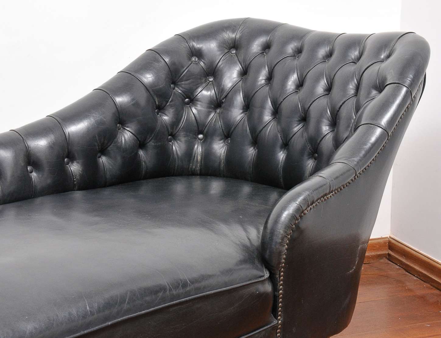 Sofá de quatro lugares estilo inglês Cesterfield, encosto e braço em captone forrado com sofisticado tecido em linho.