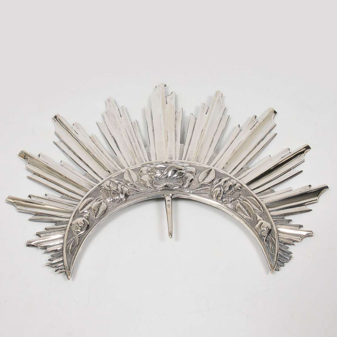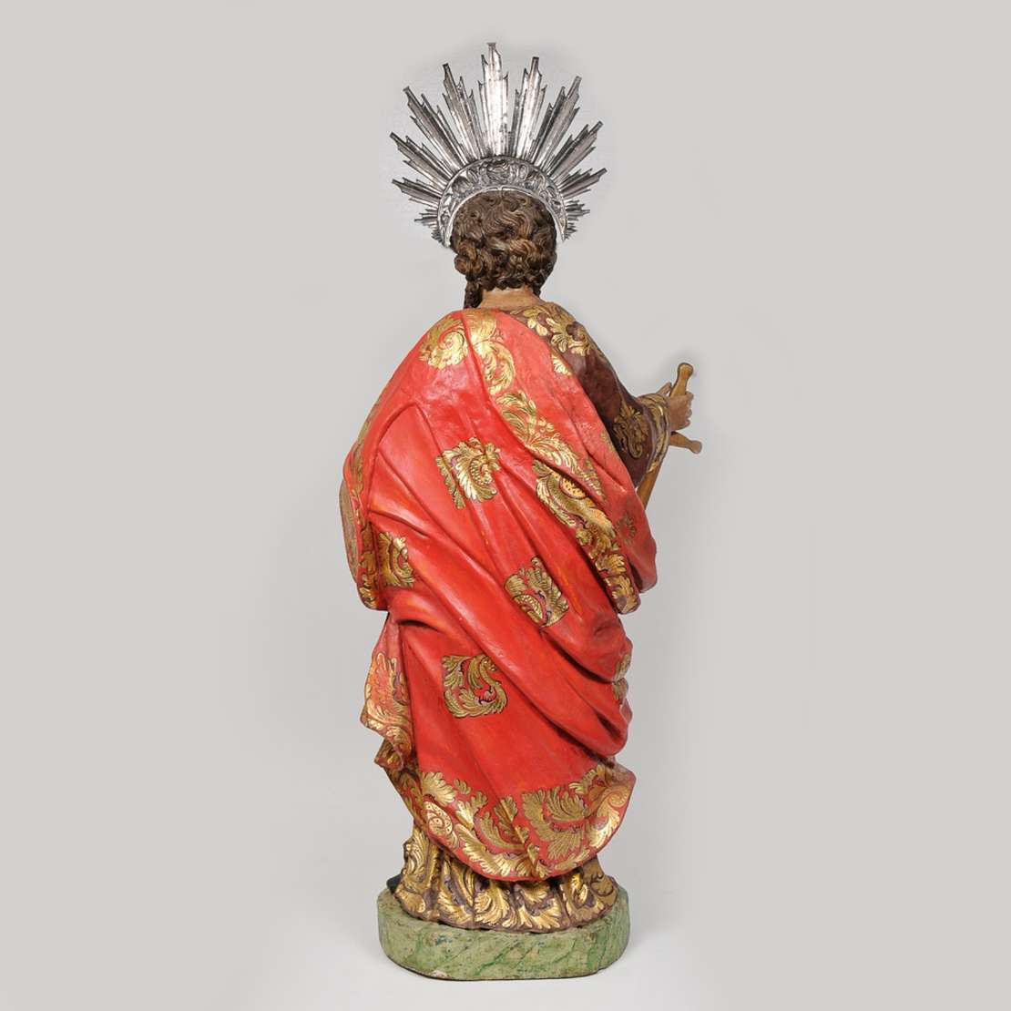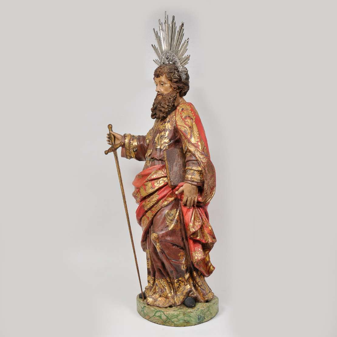 Imagem brasileira em madeira policromada, com resplendor de prata de lei medindo 69 cm