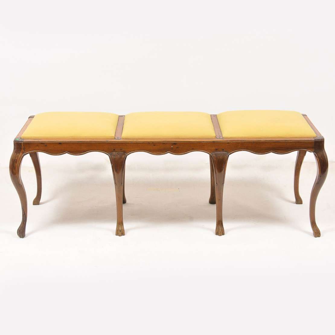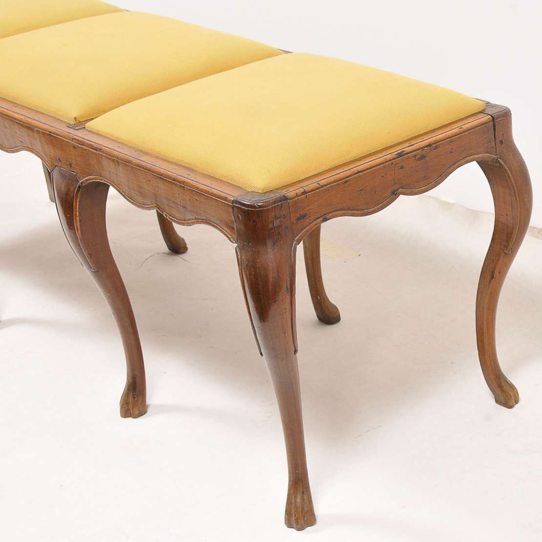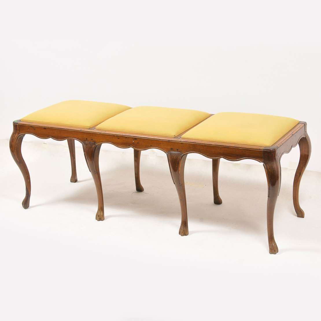 Par de banquetas inglesas, em madeira, com assento em formato ovalado. Séc. XVIII.
