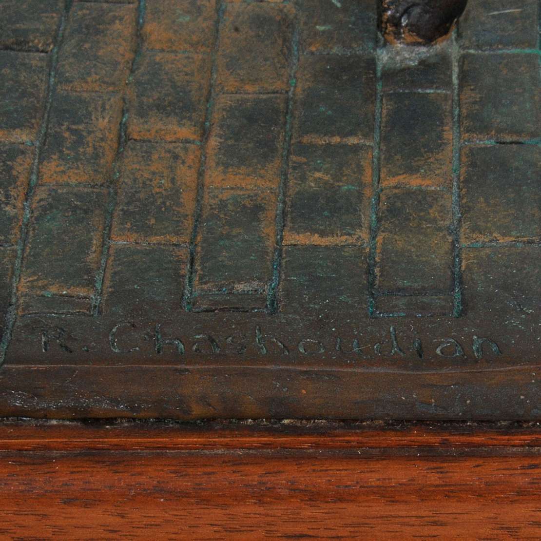Escultura em madeira de demolição.
