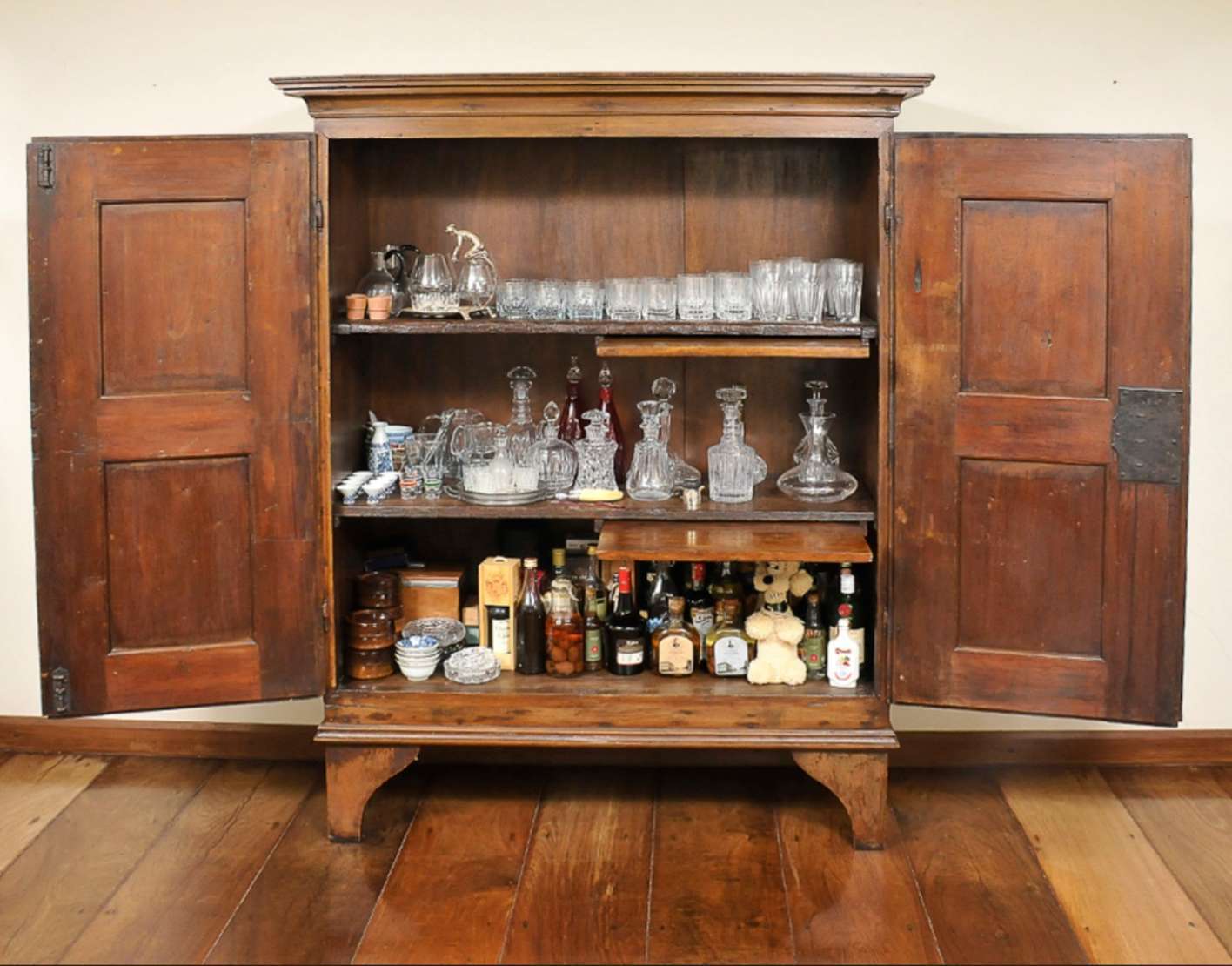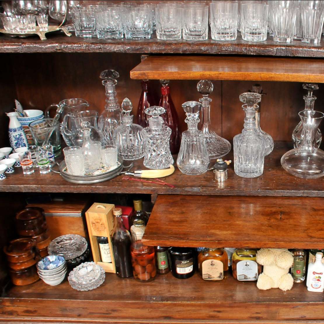 Aparador em madeira nobre com uma gaveta com detalhes na fechadura de marfim e puxadores em madeira no formato de bol...