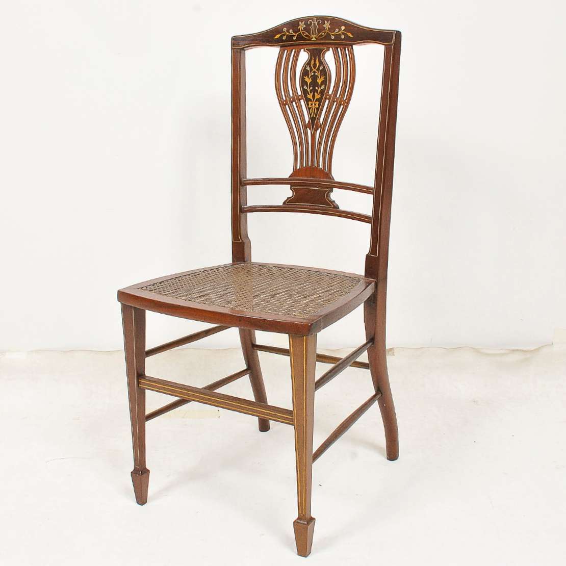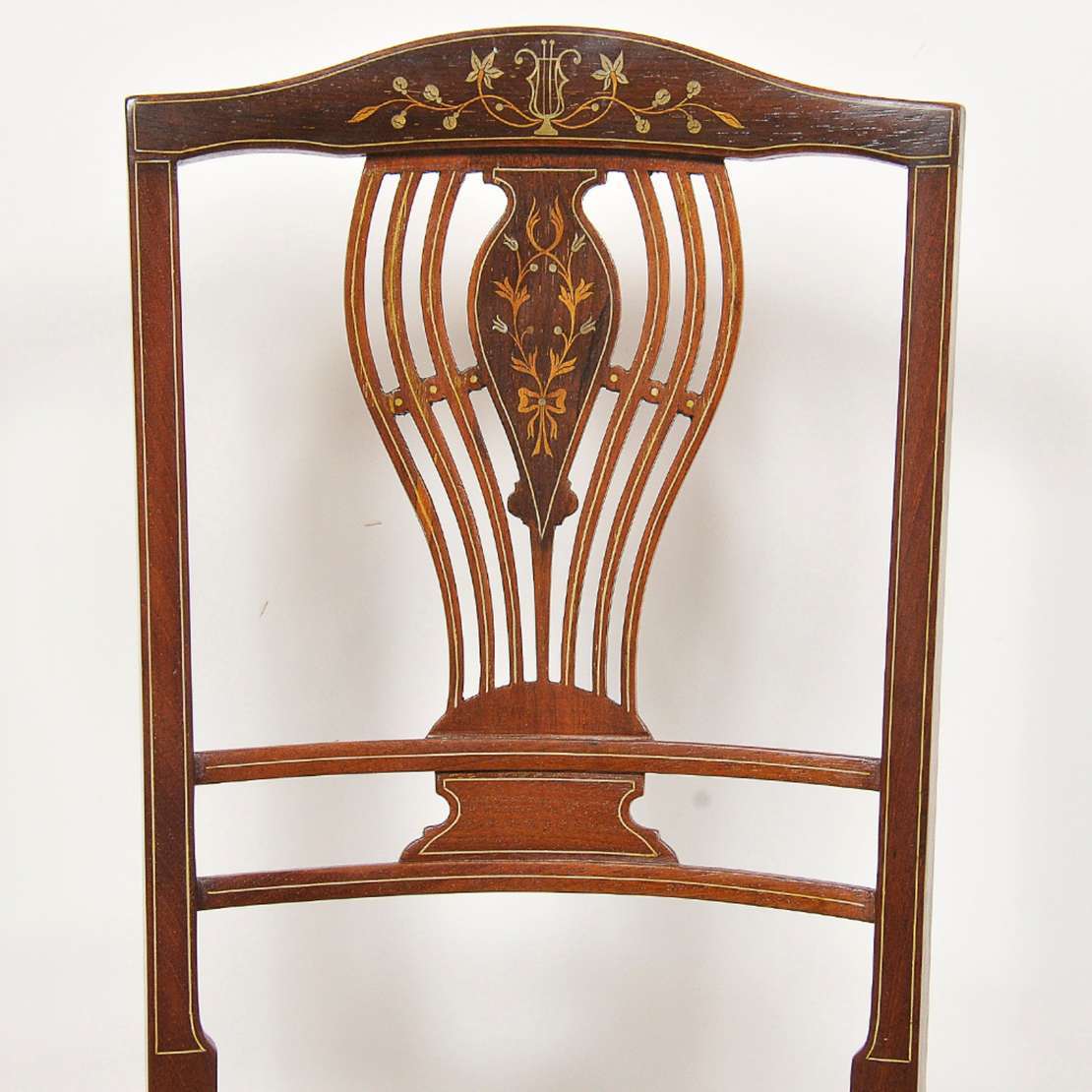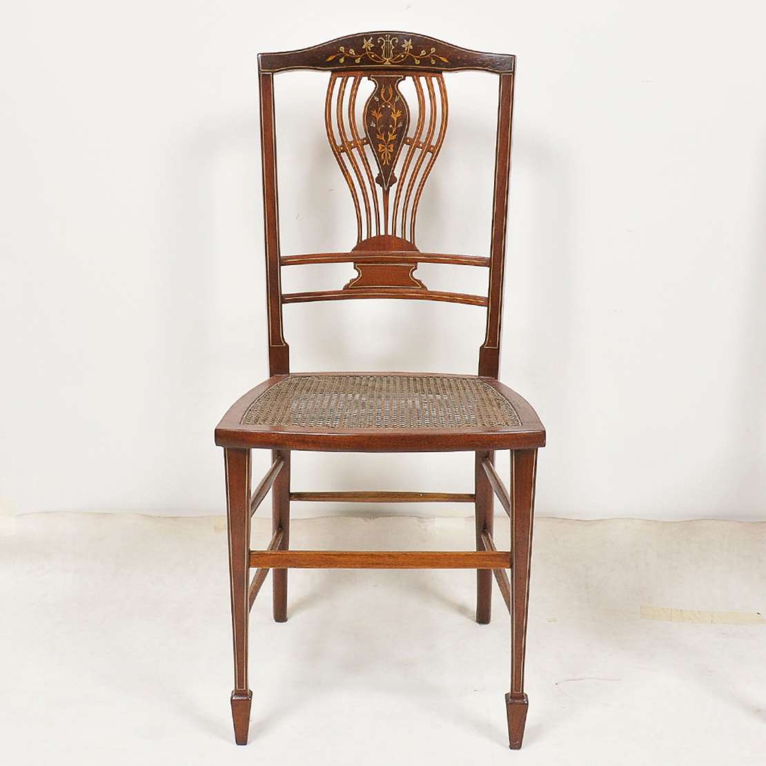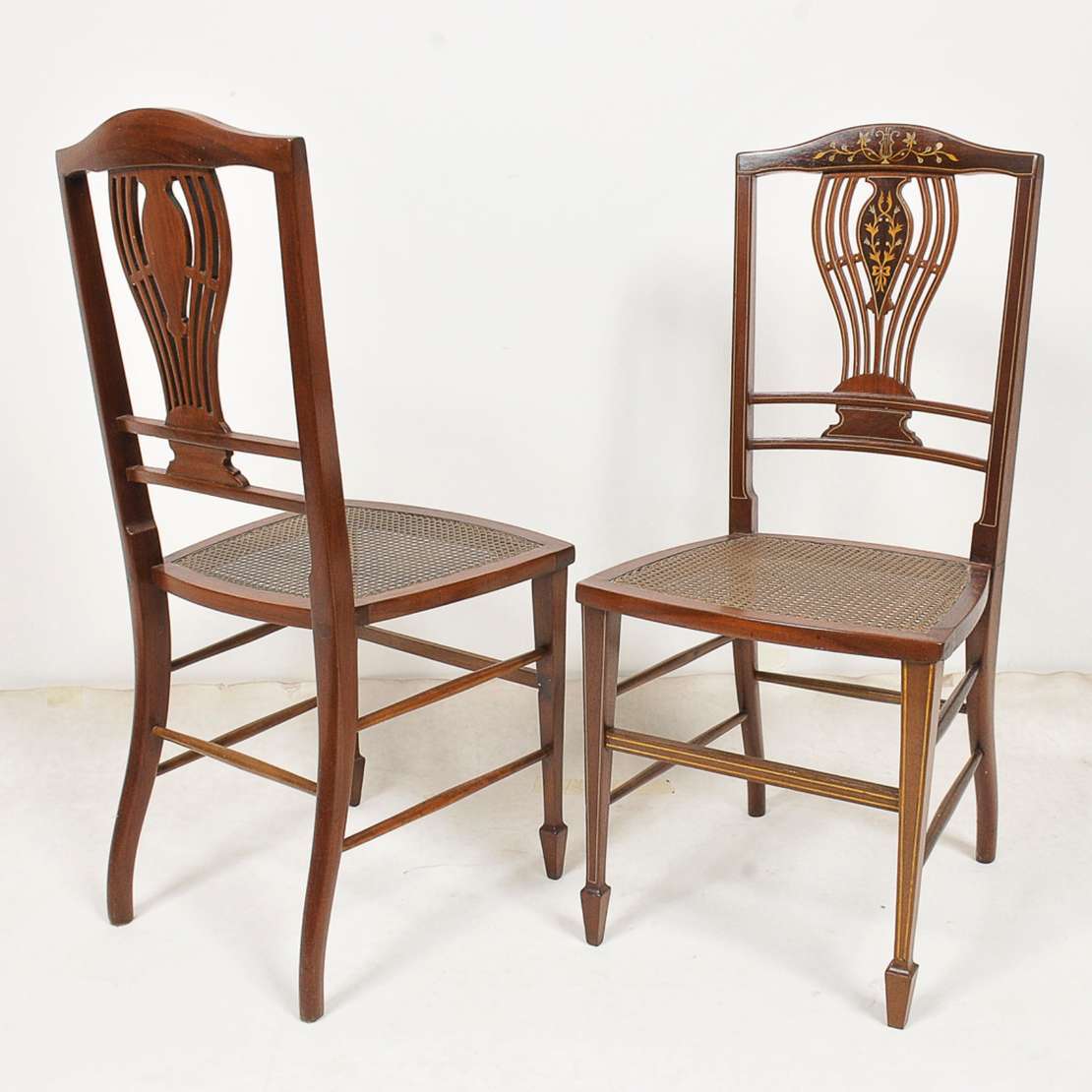Par de cadeiras em madeira nobre com assento em palhinha, encosto vazado com detalhes em marqueterie de motivos flora...