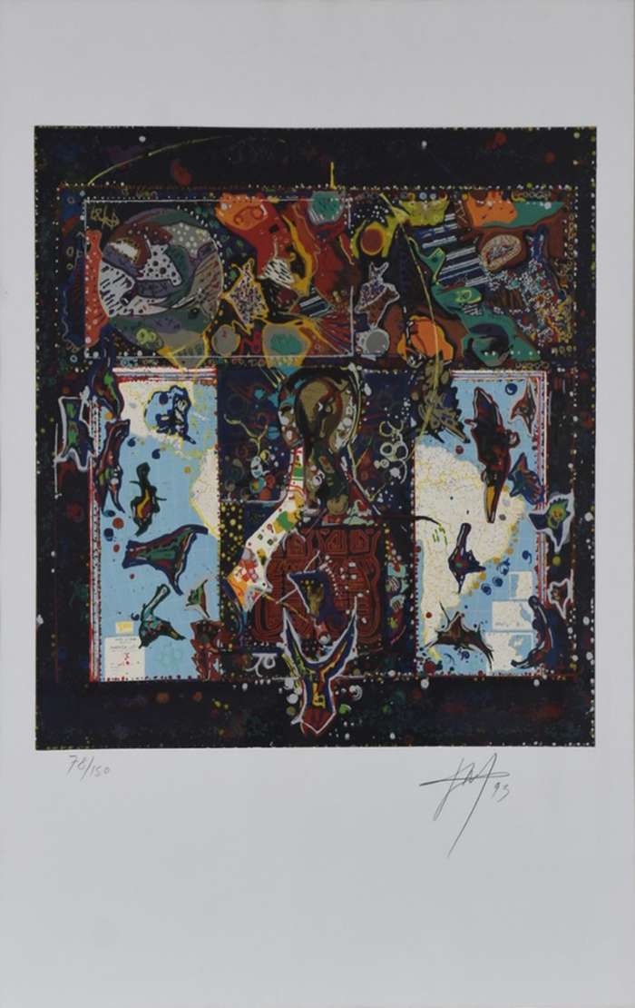 Gravura de tiragem limitada pertencente ao acervo Ecoarte, cuja obra matriz participou da exposição patrocinada pelo Banco Bozano e Simonsen ocorrida em 1992 no Museu de Arte Moderna do Rio de Janeiro em diálogo com a Conferência Mundial do Meio Ambiente e Desenvolvimento. Apenas 25 obras da mostra tiveram gravuras editadas, sendo está uma dessas selecionadas. A obra matriz está reproduzida no livro Ecoarte à pág. 204.