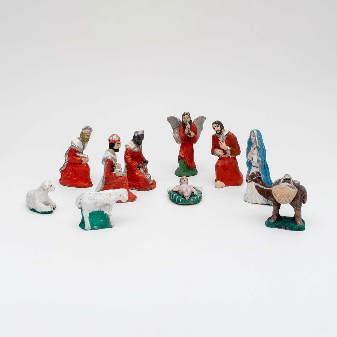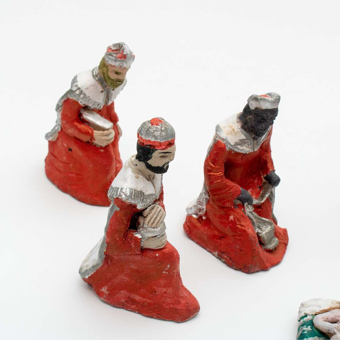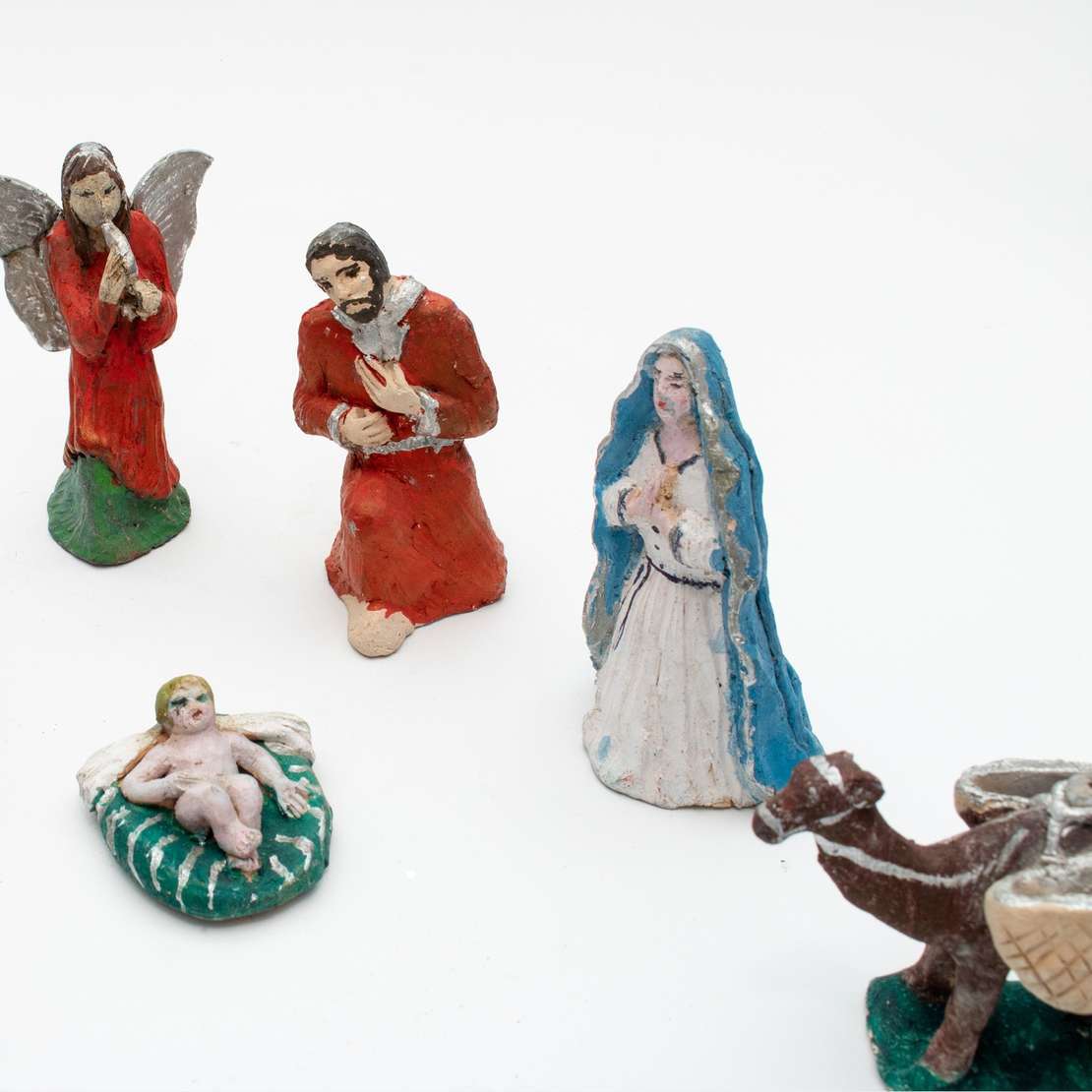 Presépio em arte popular composto por 9 esculturas confeccionada em terracota policromada e esmaltadas.