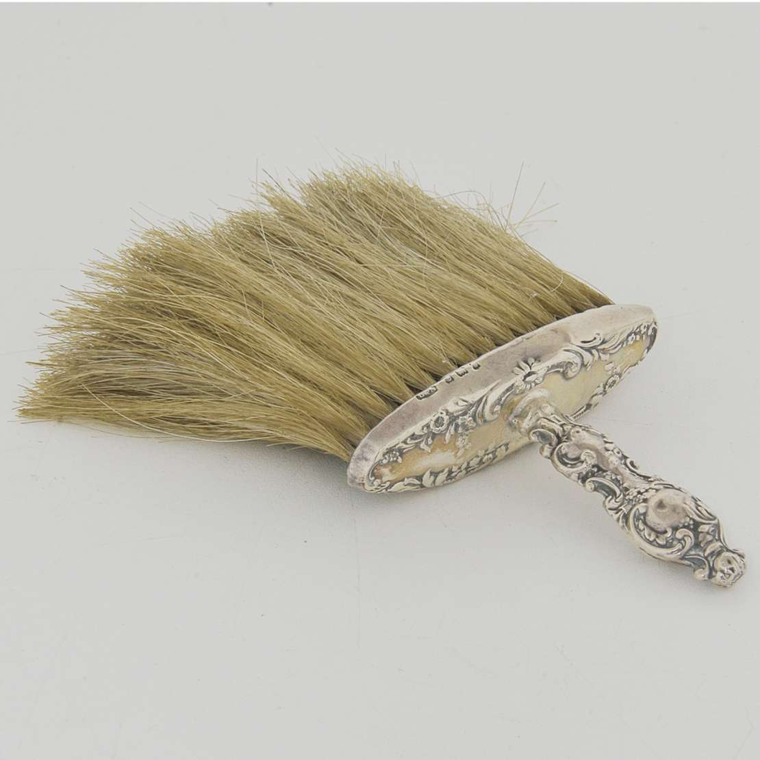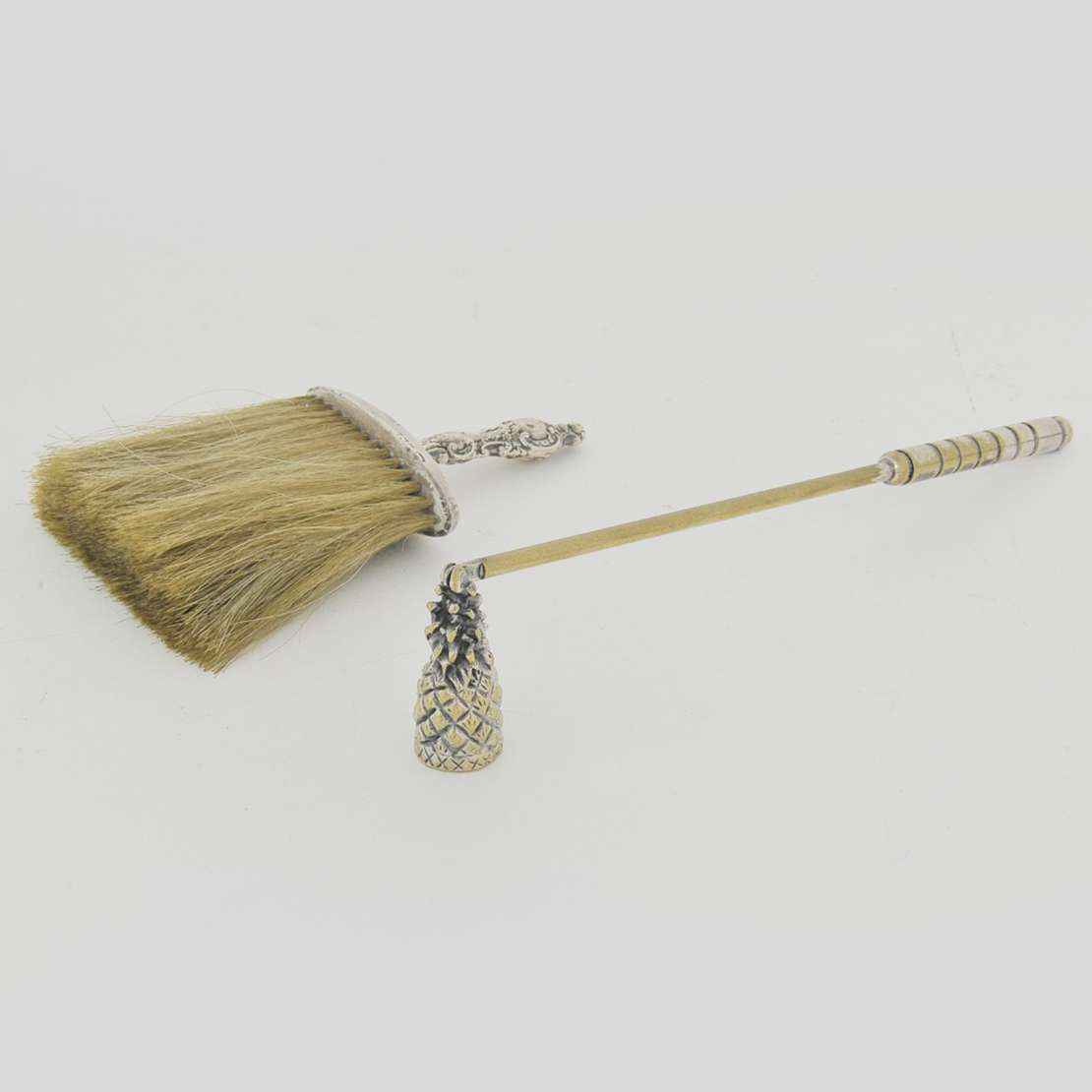 Paliteiro em prata brasileira, lavrado no formato de vaso em corneta com flores. Base quadrangular com pés de garra (...