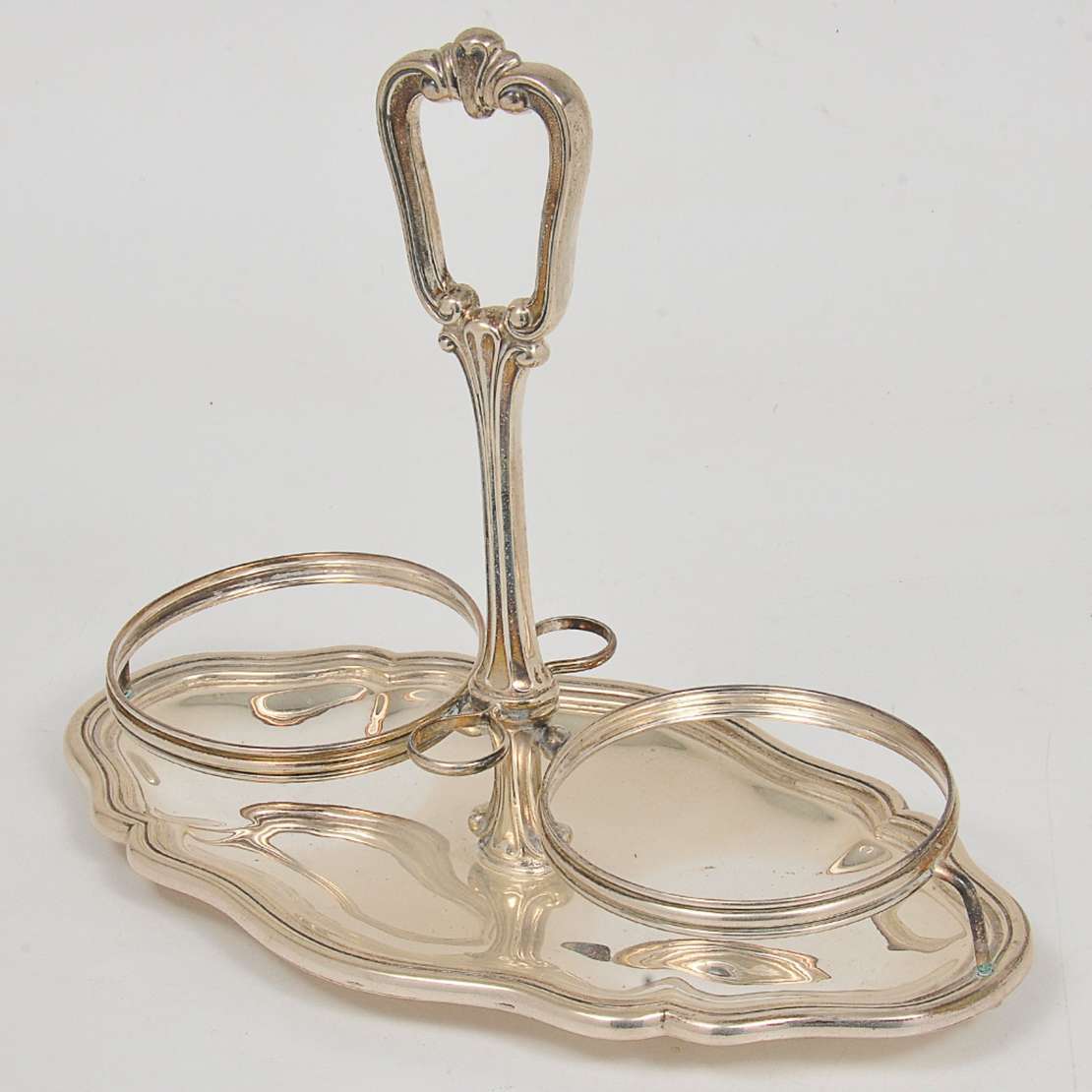 Paliteiro em prata brasileira, lavrado no formato de vaso em corneta com flores. Base quadrangular com pés de garra (...