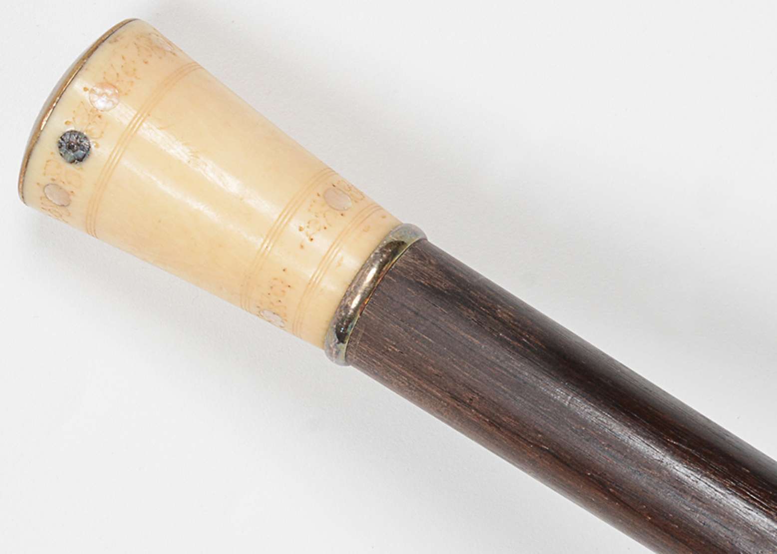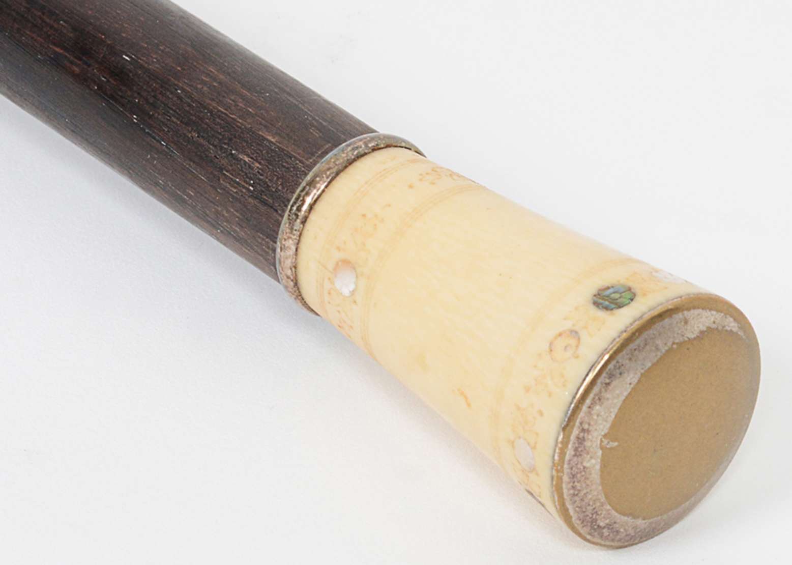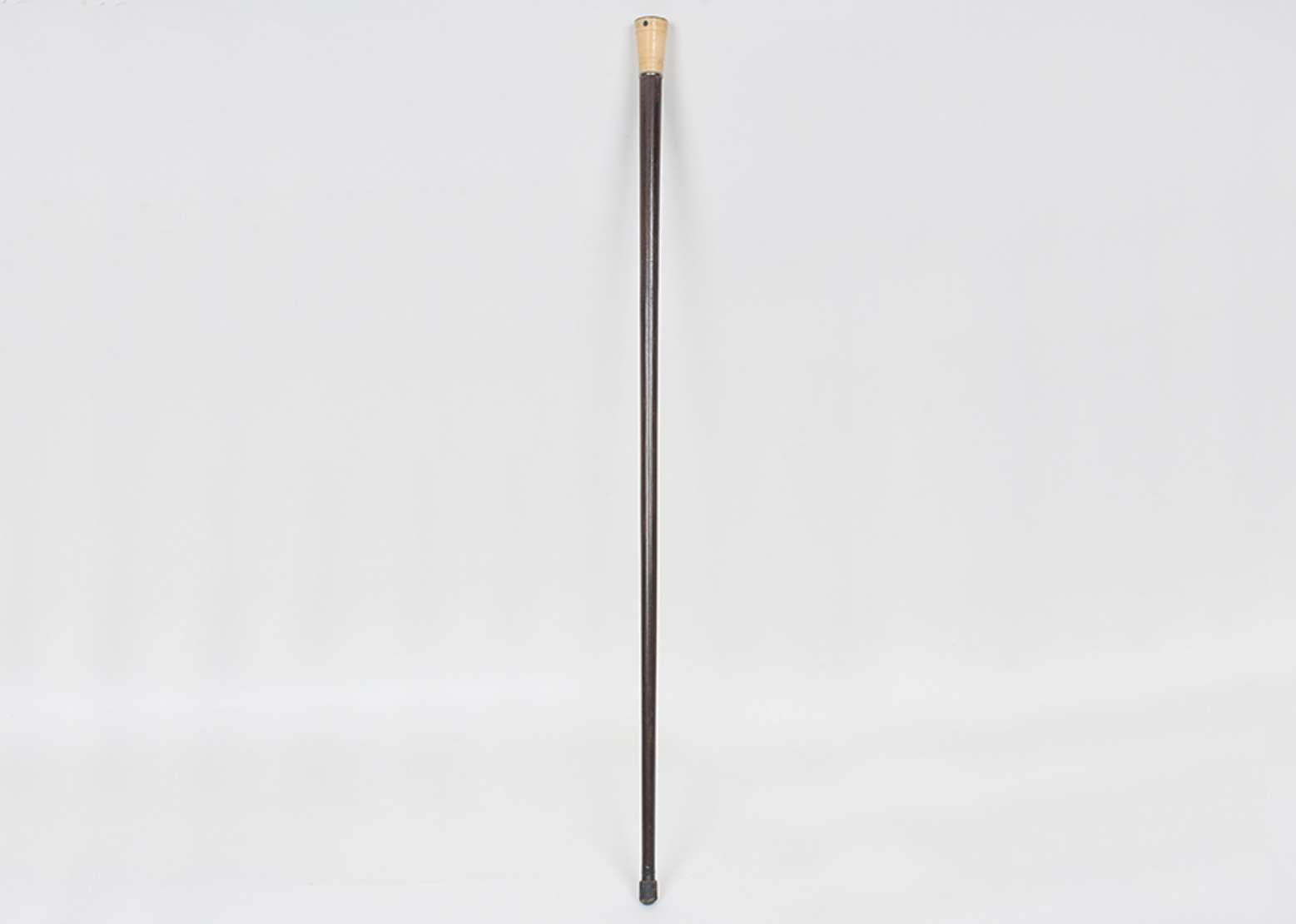 Bengala de colecao com corpo em madeira nobre com castao em prata ricamente cinzelada com acantos e volutas em relevo...