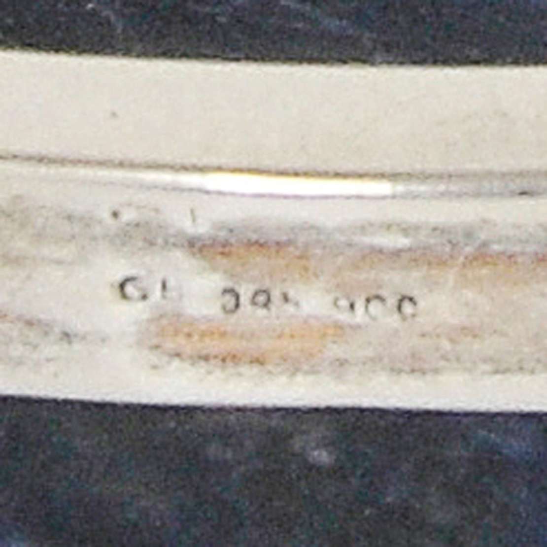 LUIS FERREIRA - Bandeja oval em prata portuguesa com centro liso, ornamentada por galeria vazada em treliças arqueada...