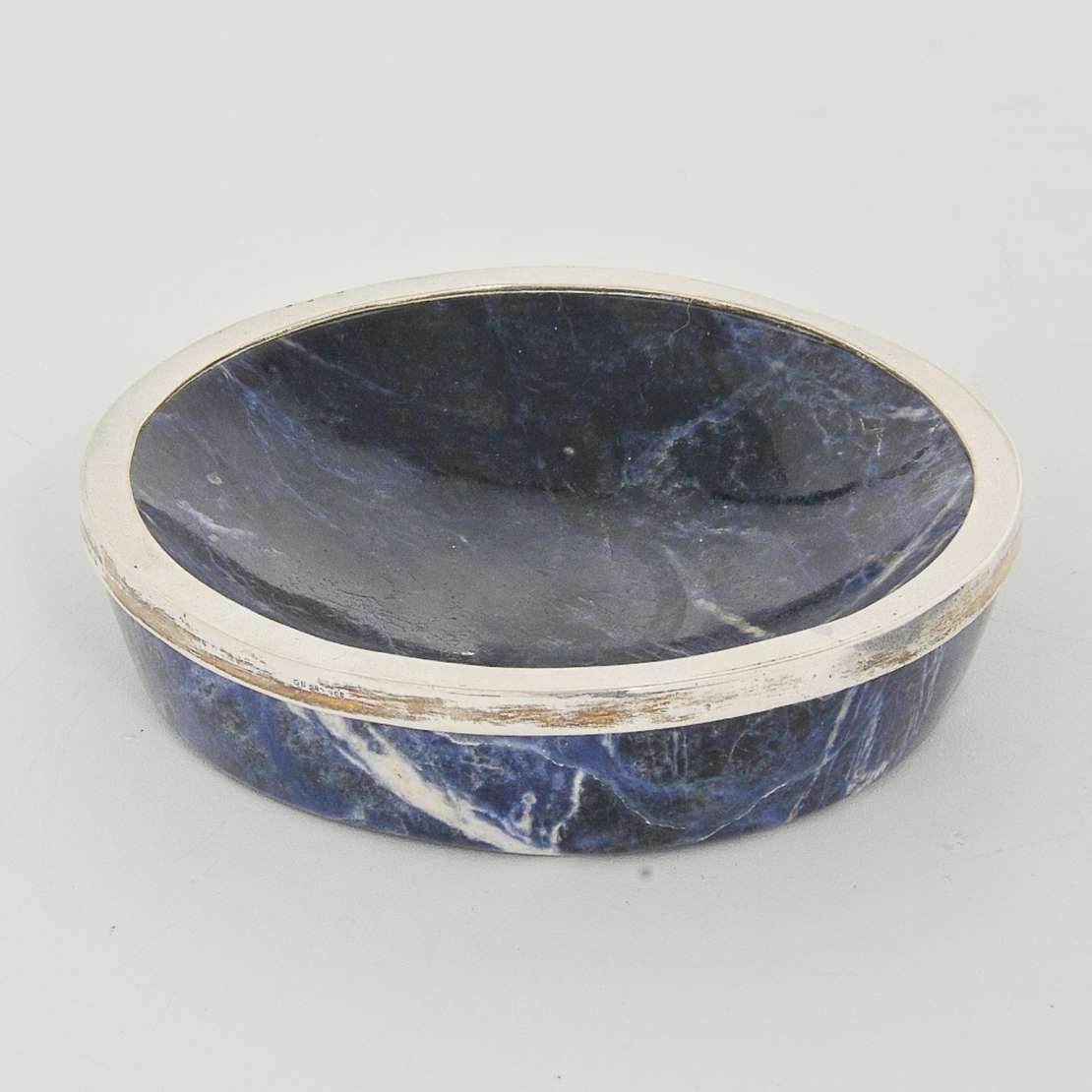Caixa para jóias, de formato ovalado em prata portuguesa ornamentada por volutas, folhagens e reservas. Tampa central...
