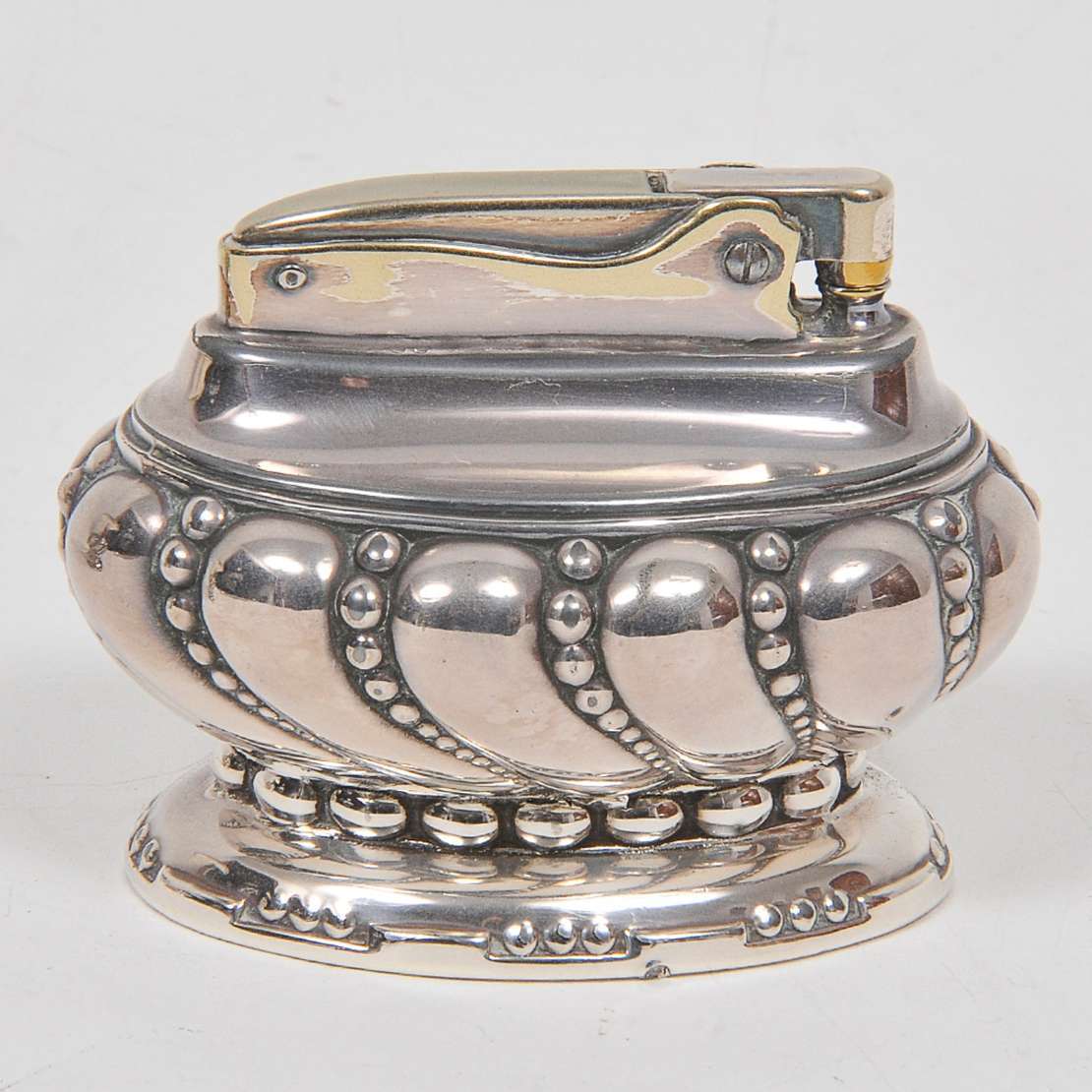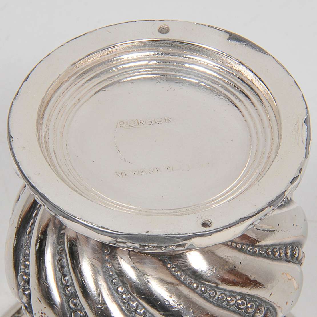 "Wine Cooler" em metal prateado brasileiro. Bojo circular ornado com bordas de fitas e lacinhos, ladeado por argolas ...