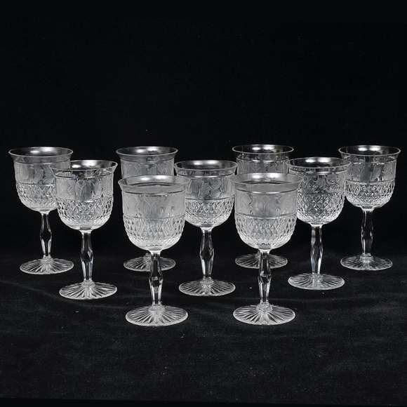 Lote com 9 taças em Cristal Fratelli Vita Bahia com lapidação Lincoln, também conhecida como Bico de Jaca com parte s...