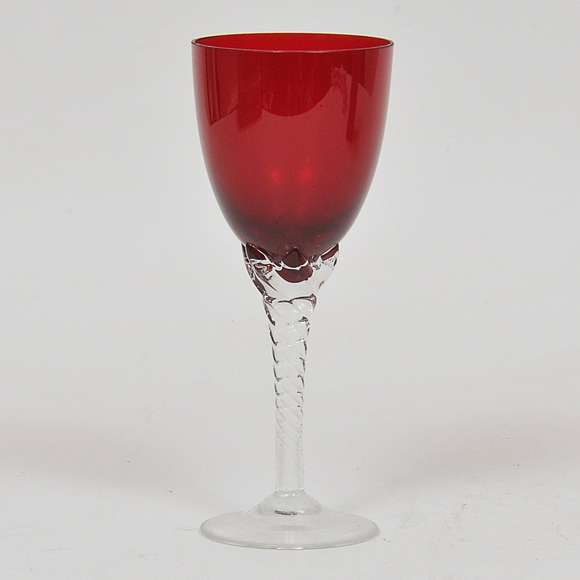 Conjunto de 17 taças em cristal na cor rubi, com pé retorcida e base circular.Lote não exposto. Em caso de arremate, ...