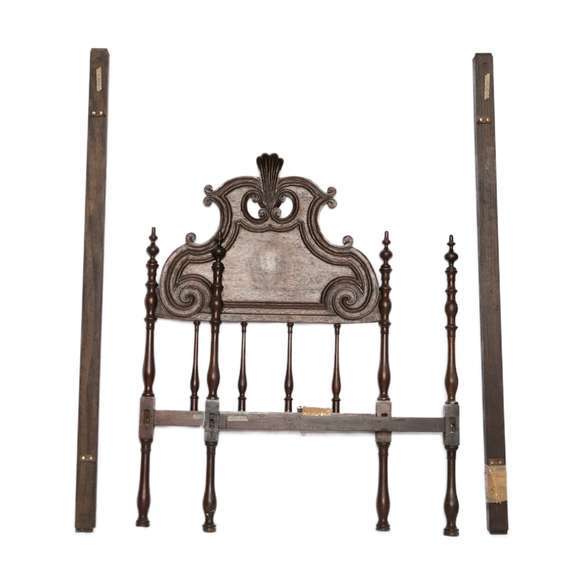 Arte Sacra - Antigo altar de capela em madeira nobre ricamente entalhado com palmas em relevo e base frisada. Lote en...