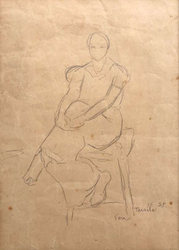 Figura feminina sentada de pernas cruzadas, 1936Nanquim s/ papelAss. dat. inf. direitoLocalizado São PauloCom descriç...