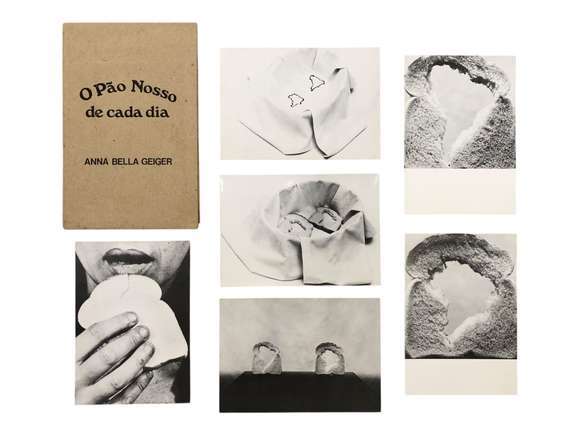 Saco de pão e seis cartões postais em papel kraft Procedencia ateliê do artista Apresenta certificado.Reproduzida no ...