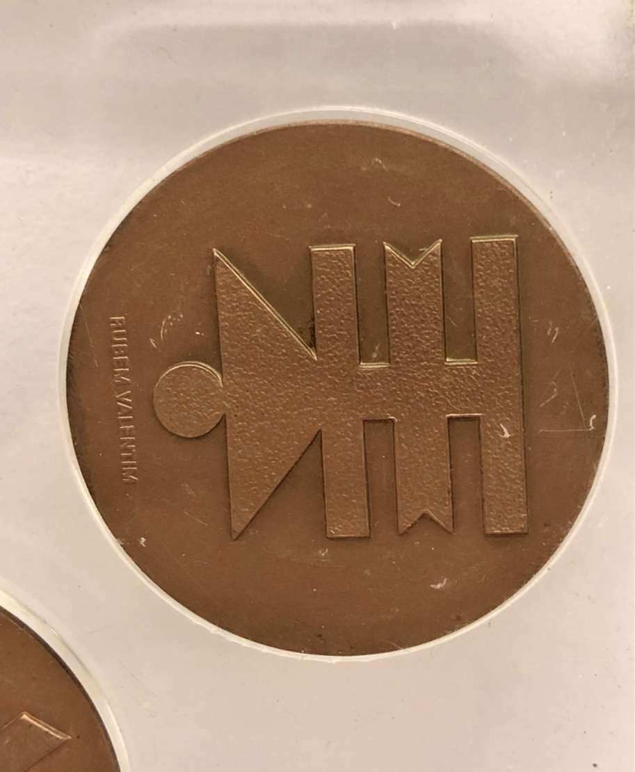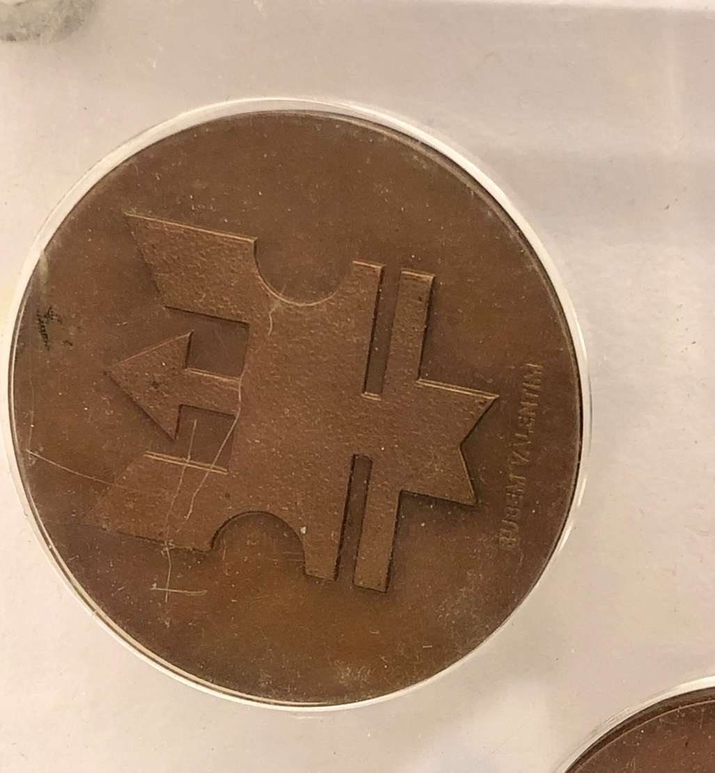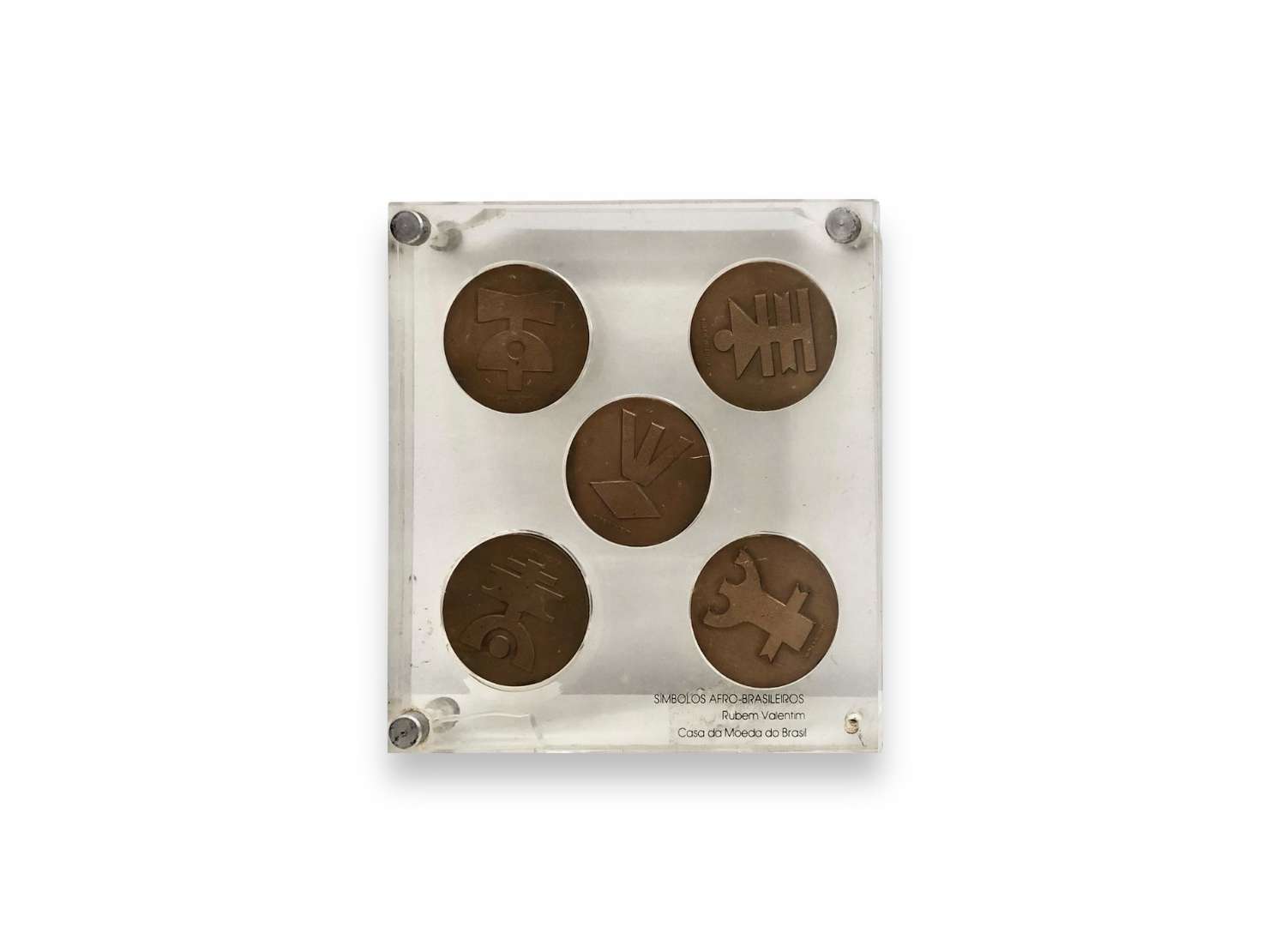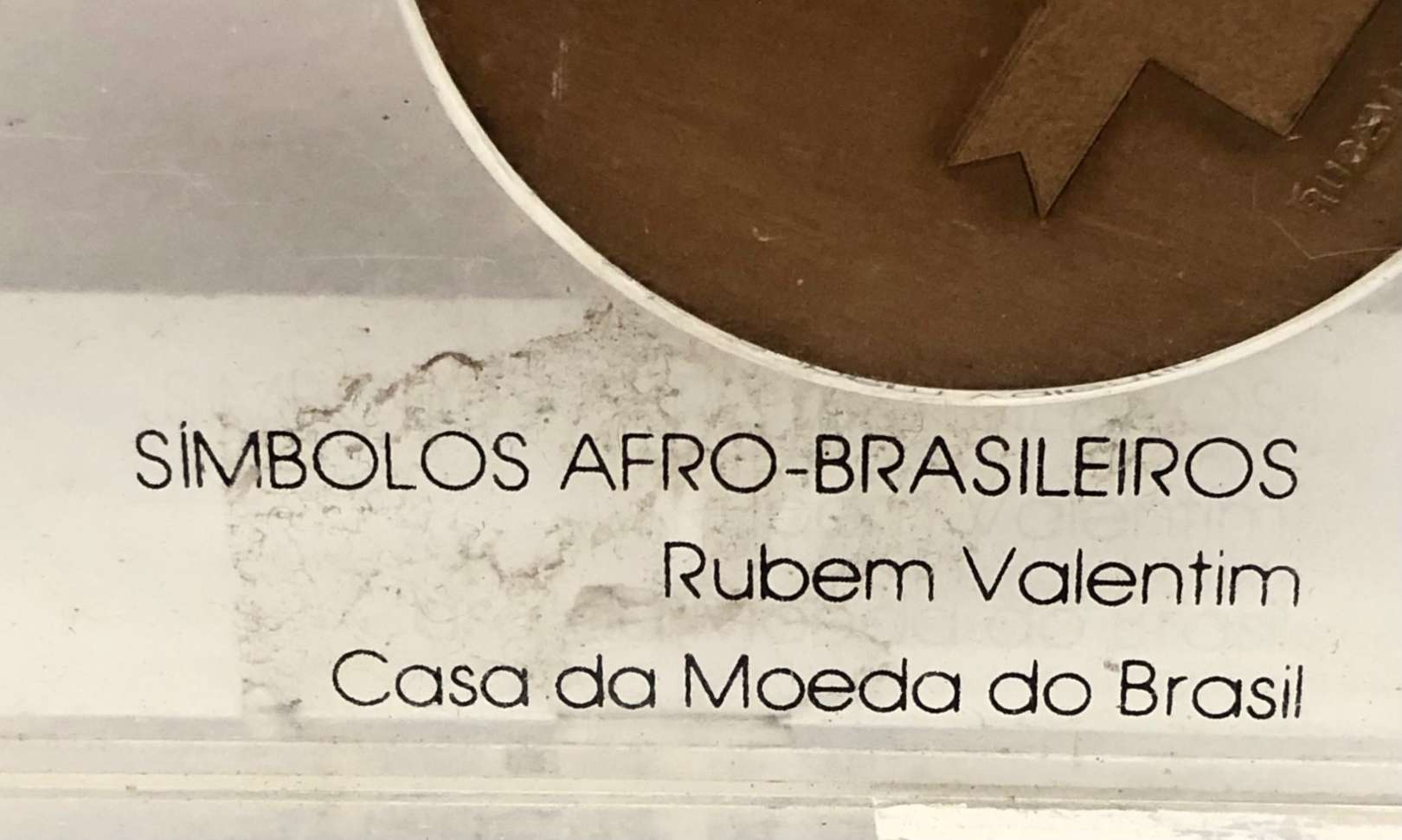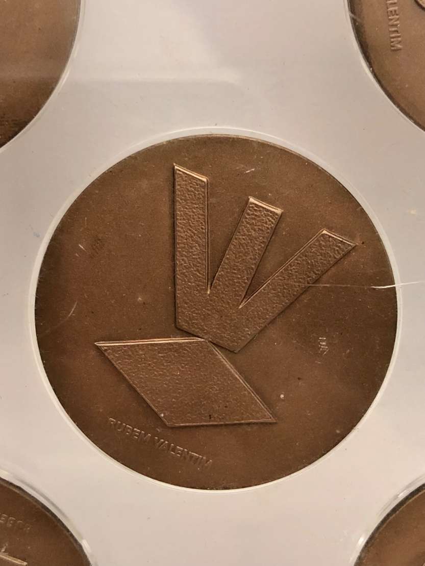 Escultura em bronze Apresenta dois lados, sendo uma face em bronze dourado e outra em bronze esverdeado. Ass. na peça