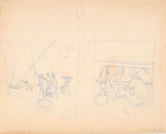 Desenho em técnica mistaAss. superior esquerdo ma chapa em alto relevo e no verso assinatura em canetaCenário para es...