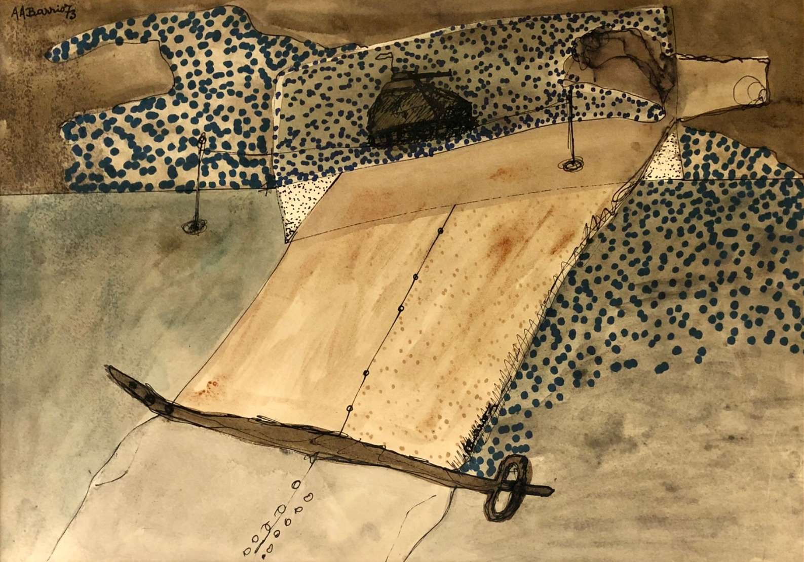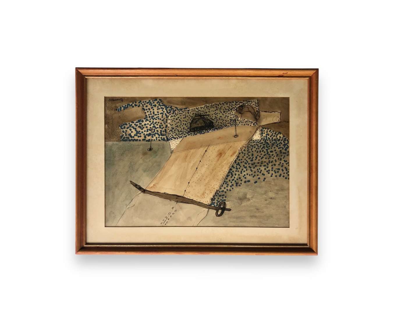 Desenho em técnica mistaAss. superior esquerdo ma chapa em alto relevo e no verso assinatura em canetaCenário para es...